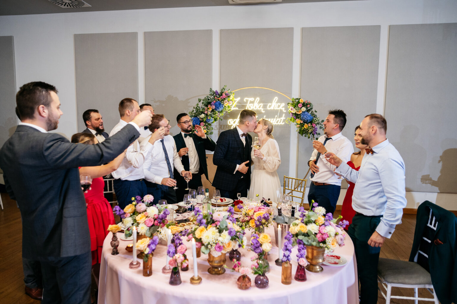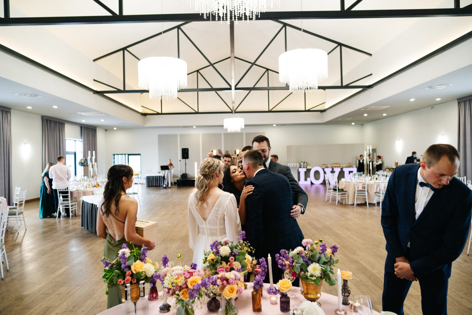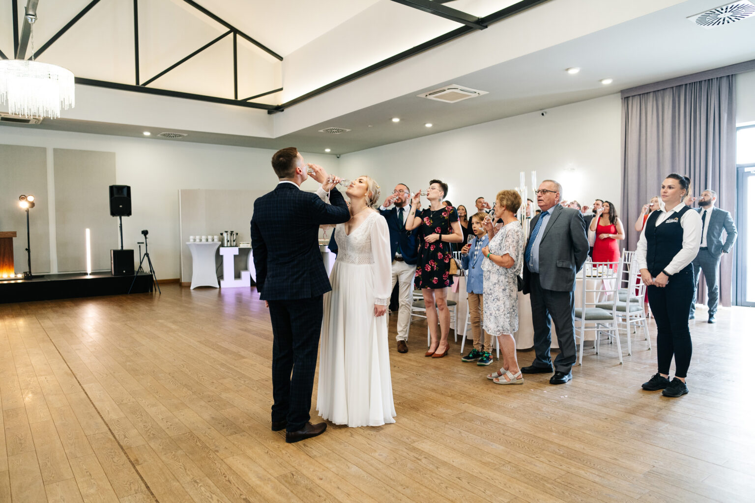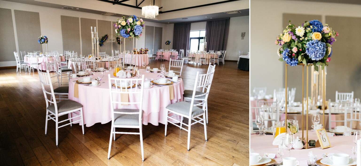 Po ceremonii przyszedł czas na przyjęcie weselne. Goście zebrali się w eleganckiej sali balowej Hotelu Węgierki, gdzie czekały na nich niesamowite dekoracje oraz smaczne dania.