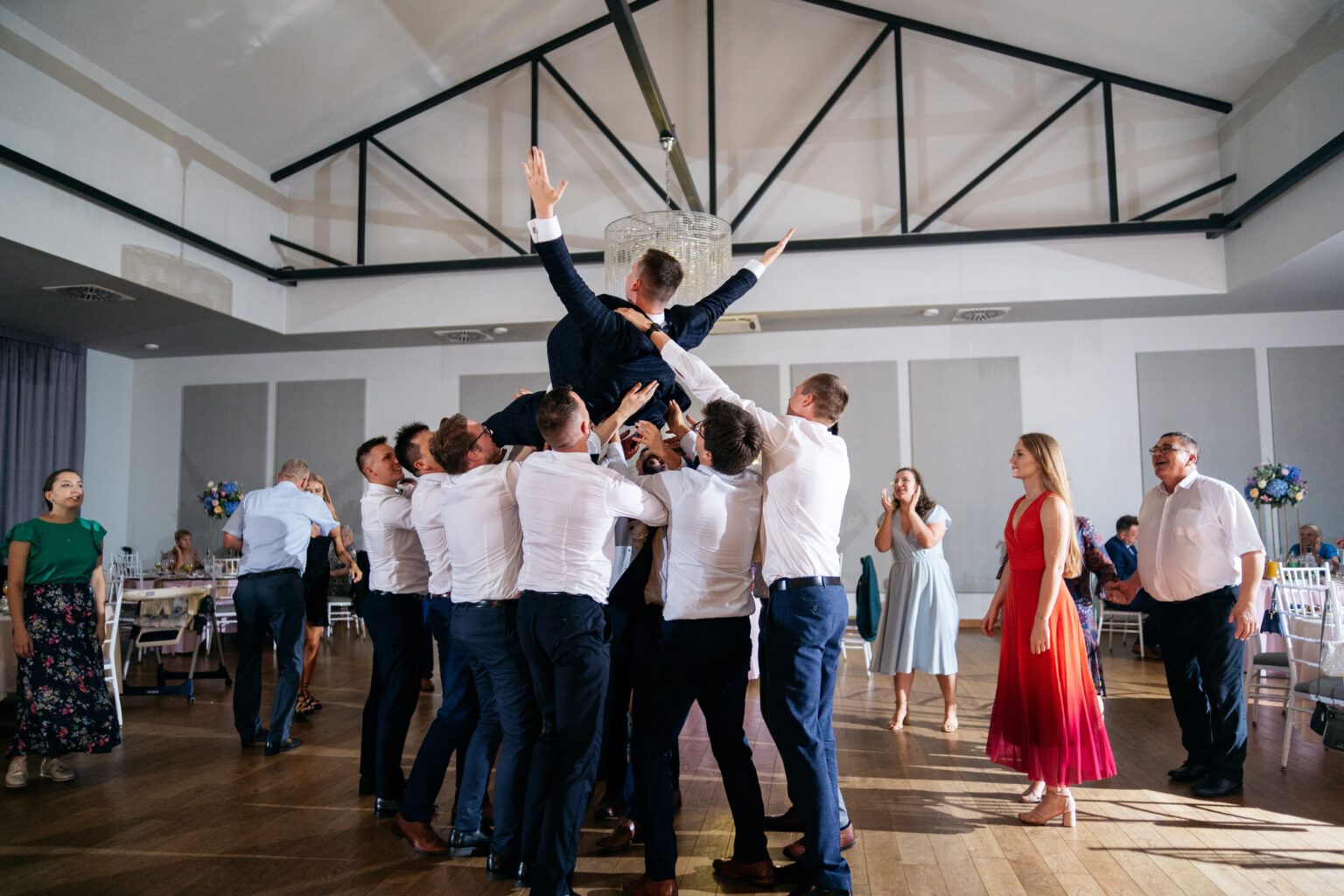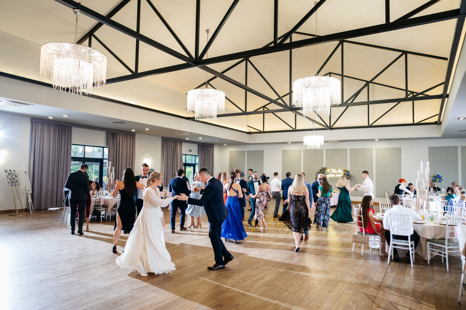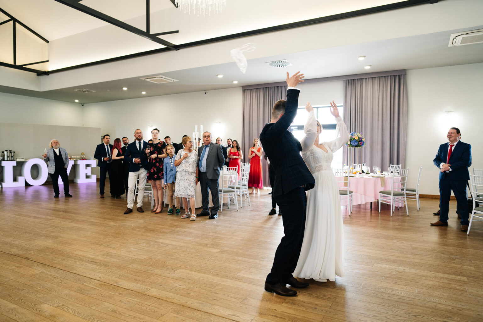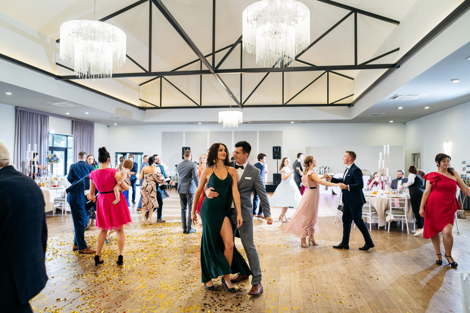 Po ceremonii przyszedł czas na przyjęcie weselne. Goście zebrali się w eleganckiej sali balowej Hotelu Węgierki, gdzie czekały na nich niesamowite dekoracje oraz smaczne dania.