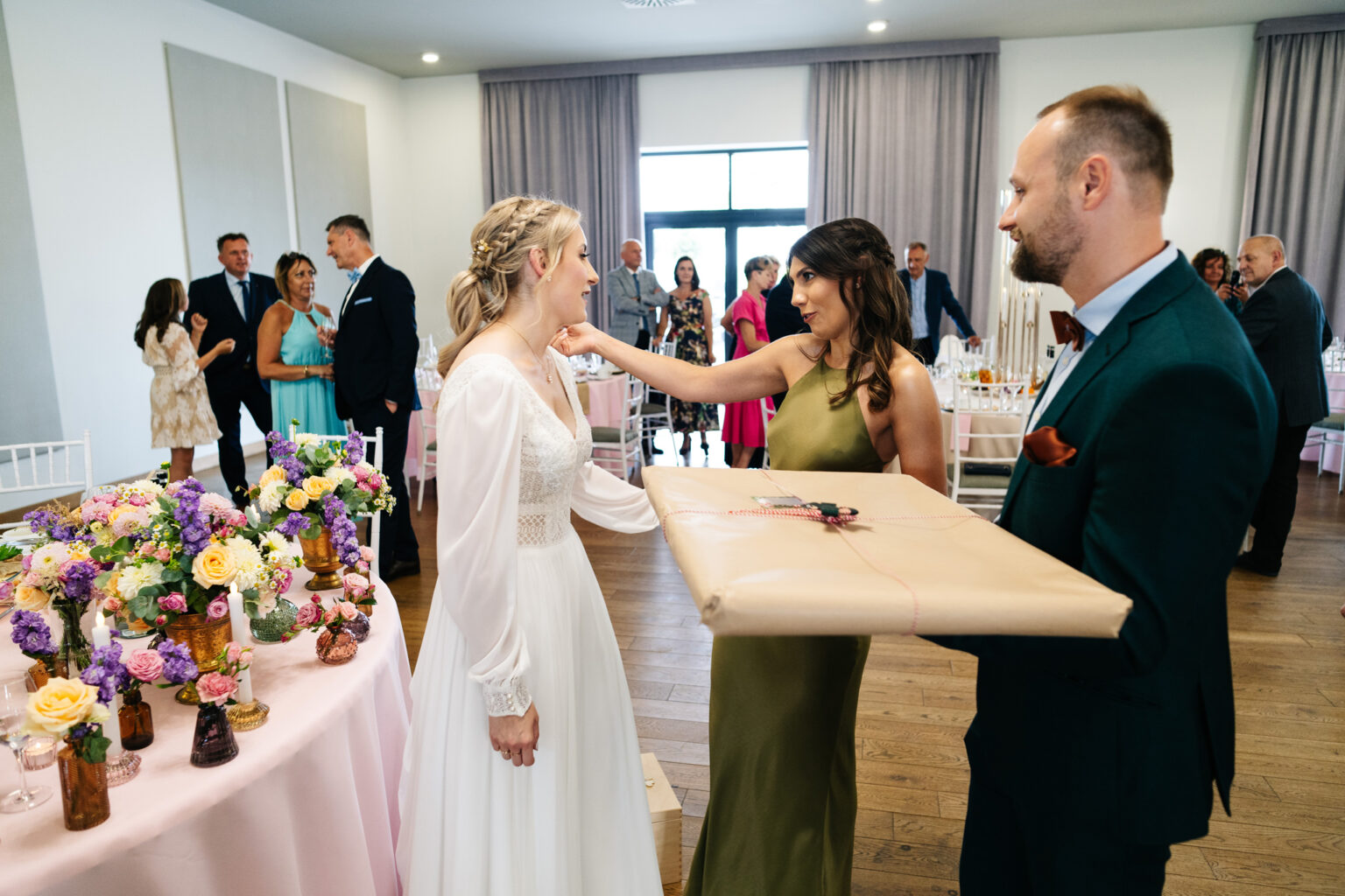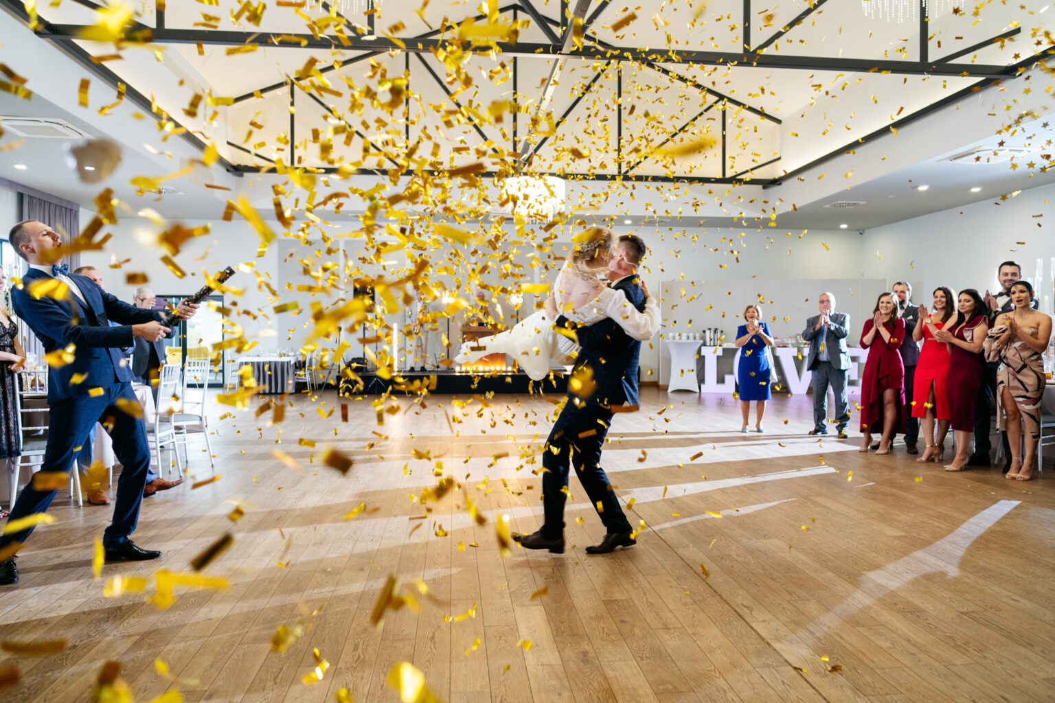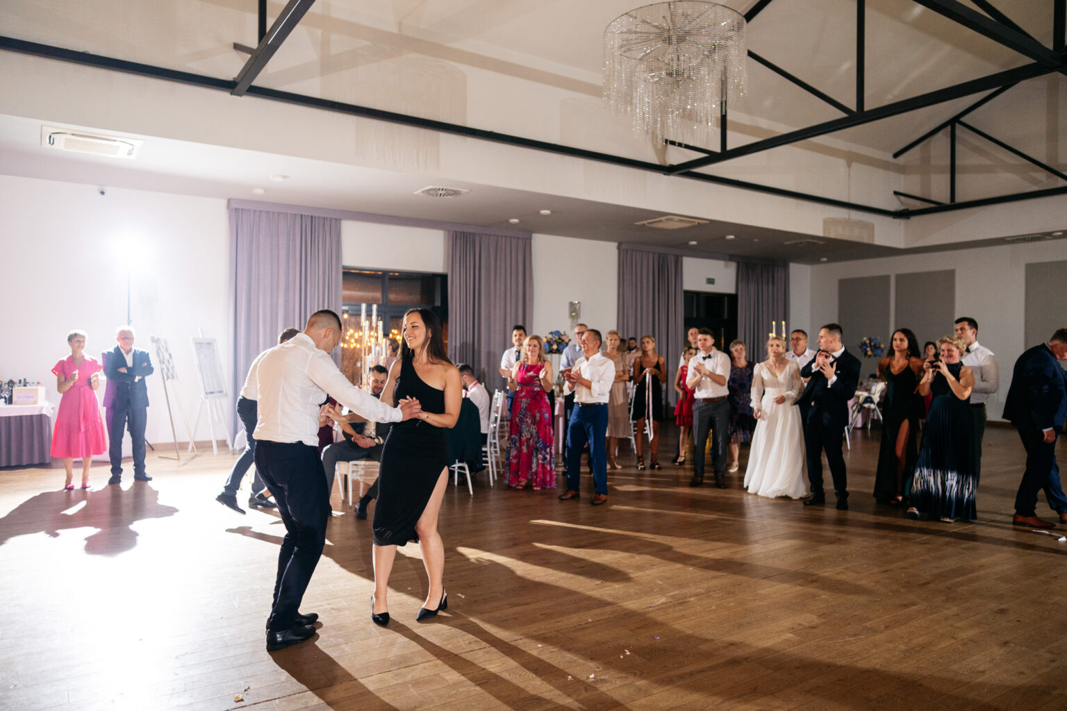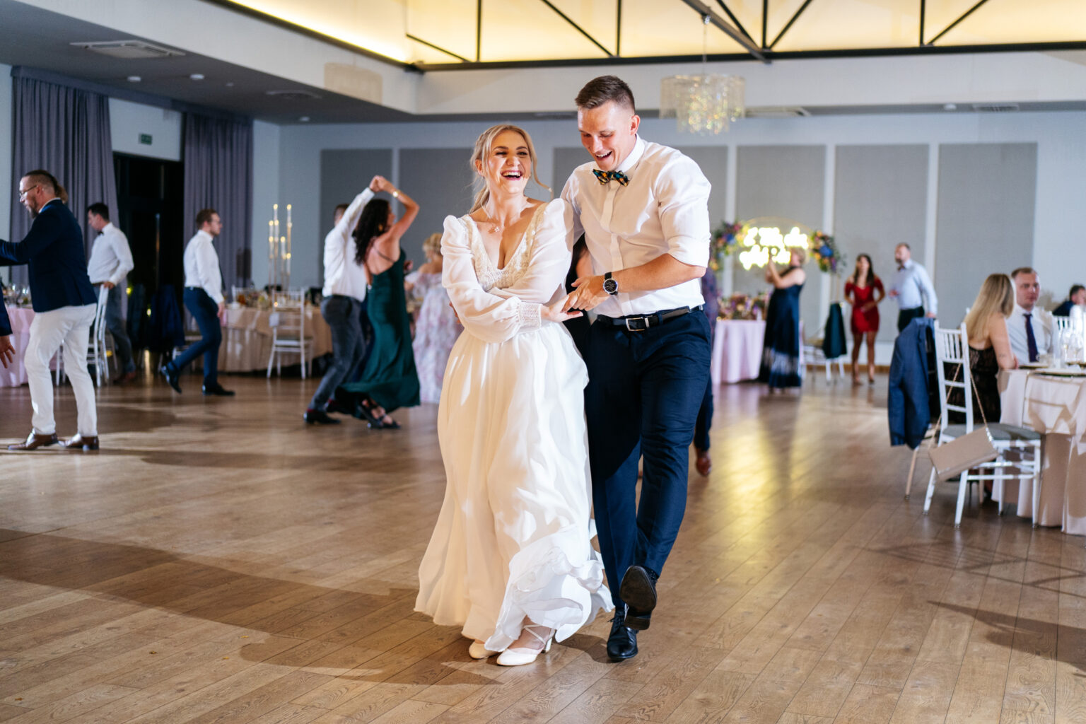 Po ceremonii przyszedł czas na przyjęcie weselne. Goście zebrali się w eleganckiej sali balowej Hotelu Węgierki, gdzie czekały na nich niesamowite dekoracje oraz smaczne dania.