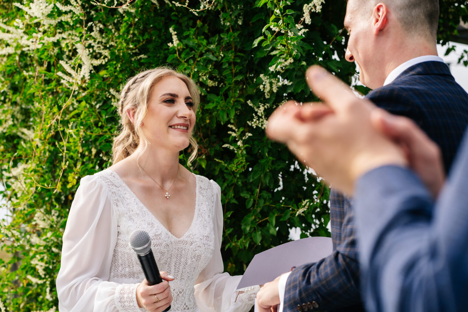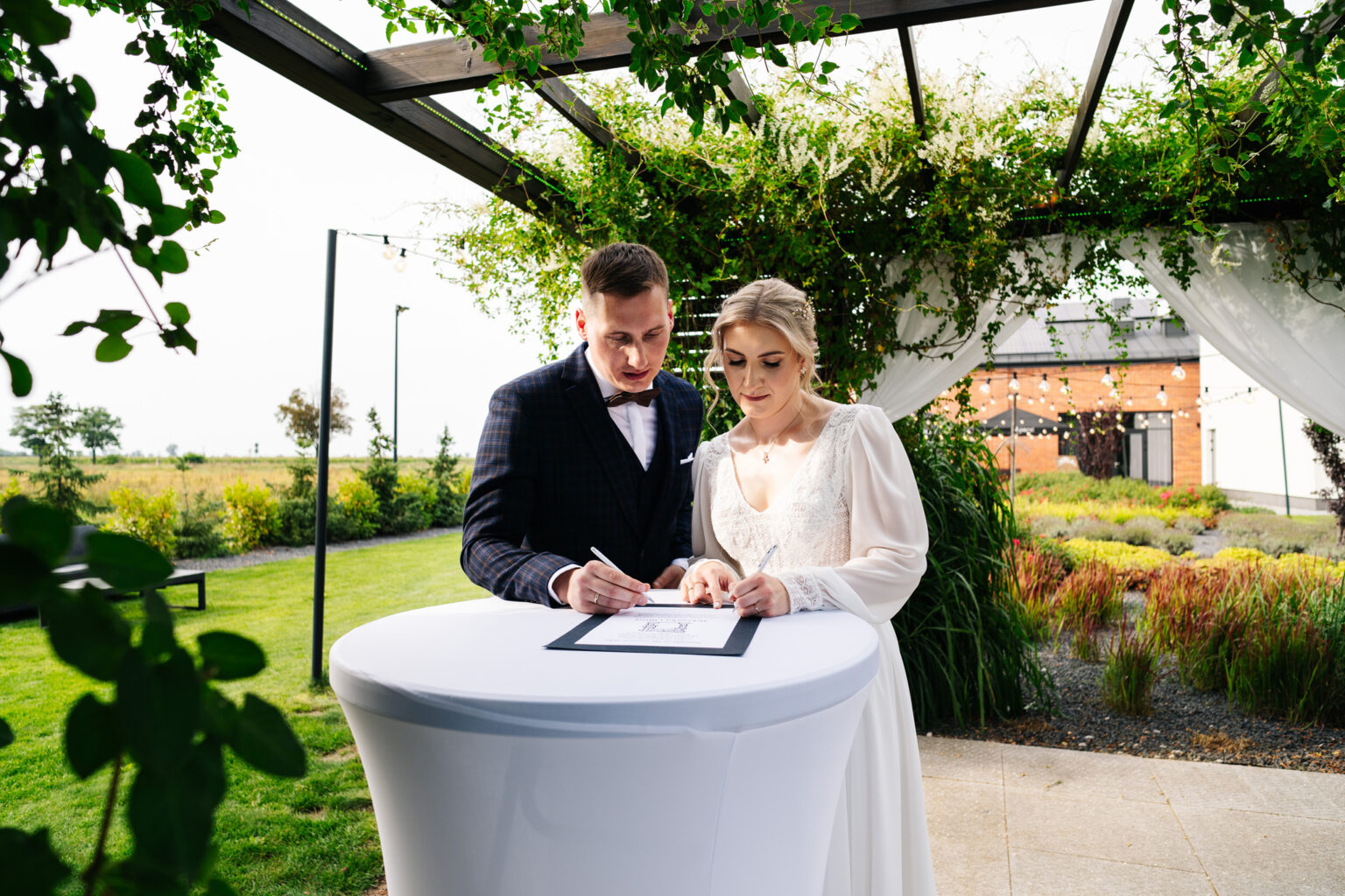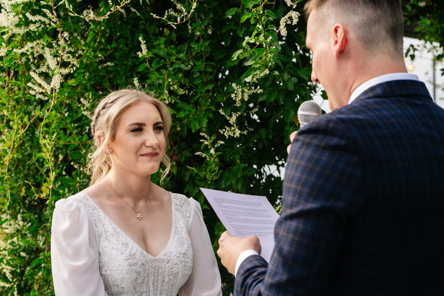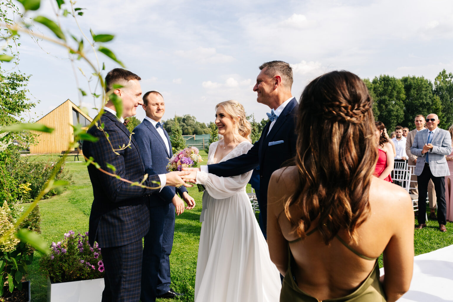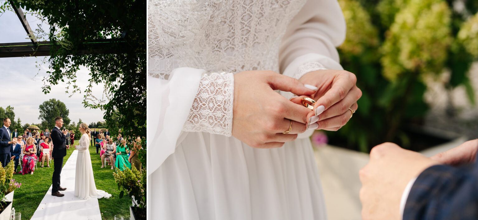 Następnym krokiem była ceremonia ślubna, która odbyła się w plenerze. Ślub humanistyczny staje się coraz bardziej popularny i dla Aleksandry i Błażeja był idealnym wyborem. Pośród malowniczej scenerii, z pięknym tłem natury, ceremonia była pełna emocji, łez radości i miłości.